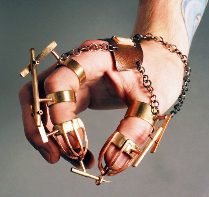 This is a piercing glove that Matthew Mauk made. This is on some Freddy Kruger shit. Pretty amazing, check out below Matt explaining how and why he made it.