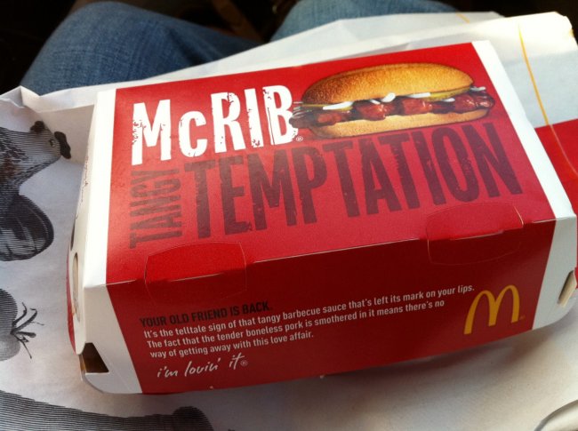 Well, it's certainly not good for you. Though "slightly trimmer than the Big Mac," which contains 540 calories and 29 grams of fat, says Christina Rexrode at USA Today, the McRib, first introduced in 1982, still packs in 500 calories and 26 grams of fat. And despite its name, one thing you won't find inside a McRib is bones. The absence of any detectable "rib" is what gives the unnutritious mush its "quirky sense of humor," says Marta Fearon, McDonald's U.S. marketing director.