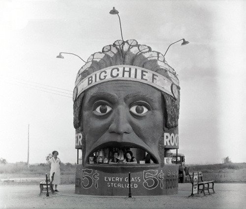 Damn, they use to do it big back in the day. Nowadays you just go to 711 for some Dr Pepper. Big Chief Root Beer, Kansas City, MO, 1933