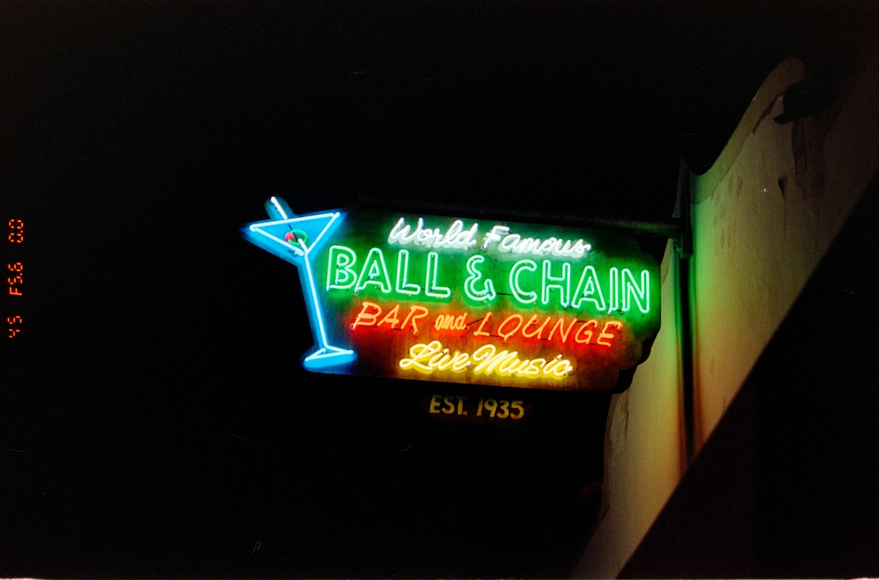 Ball & Chain Neon Sign At Night