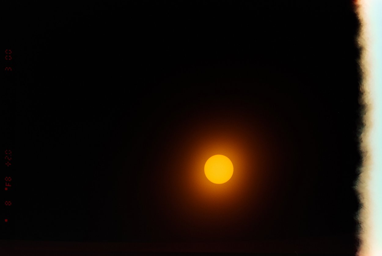 I picked up a solar filter for my lens. I'm getting ready for the total solar eclipse this year, April 8th 2024. This is my first test on film. It came out pretty good I think. It' overexposed, I have another shot that shows a sun spot but this one looks better.