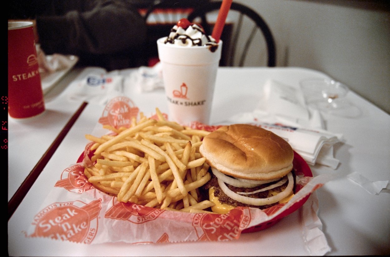This was the first time I had tallow fries, that I know of. And the first time I had Steak N Shake. I got an Original Double, plain with onions and cheese. Also a chocolate shake and the new tallow fries.