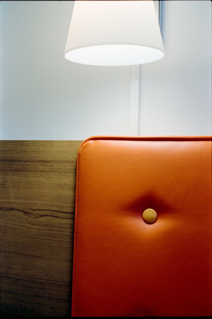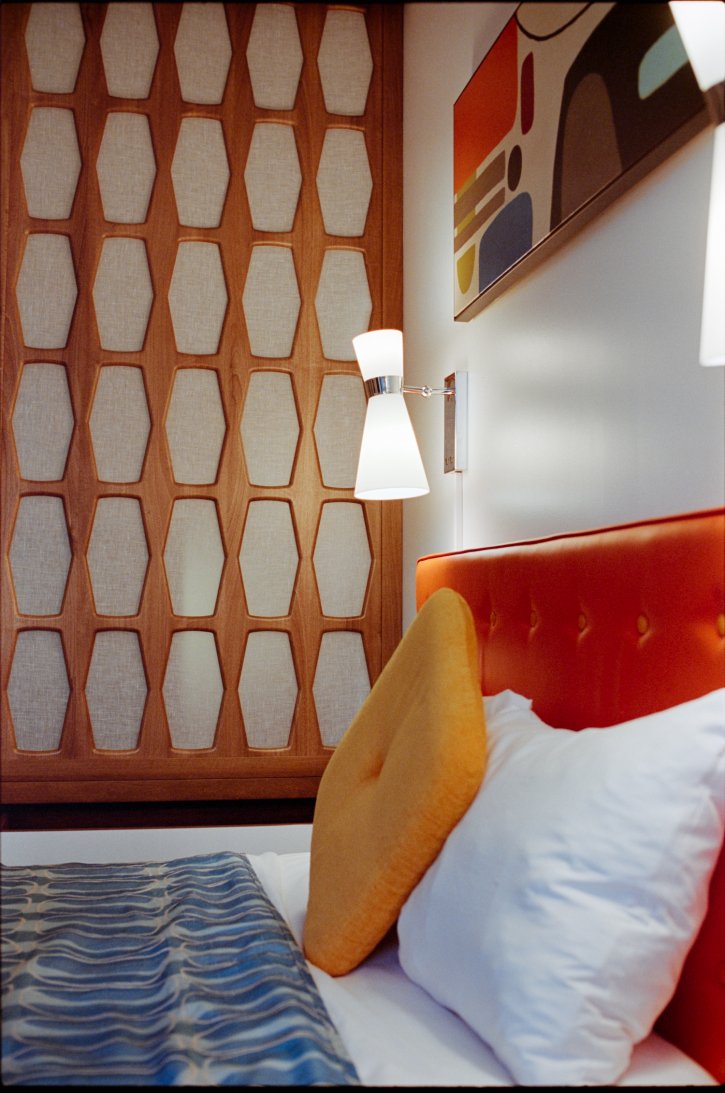 WALKING INTO MY HOTEL ROOM AND WOW, THE POP! THE VIBRANT ORANGE! NICE WAY TO GRAB MY IMMEDIATE ATTENTION. ORANGE IS A NICE COLOR TO GO IN AN INCREDIBLE RETRO ROOM.