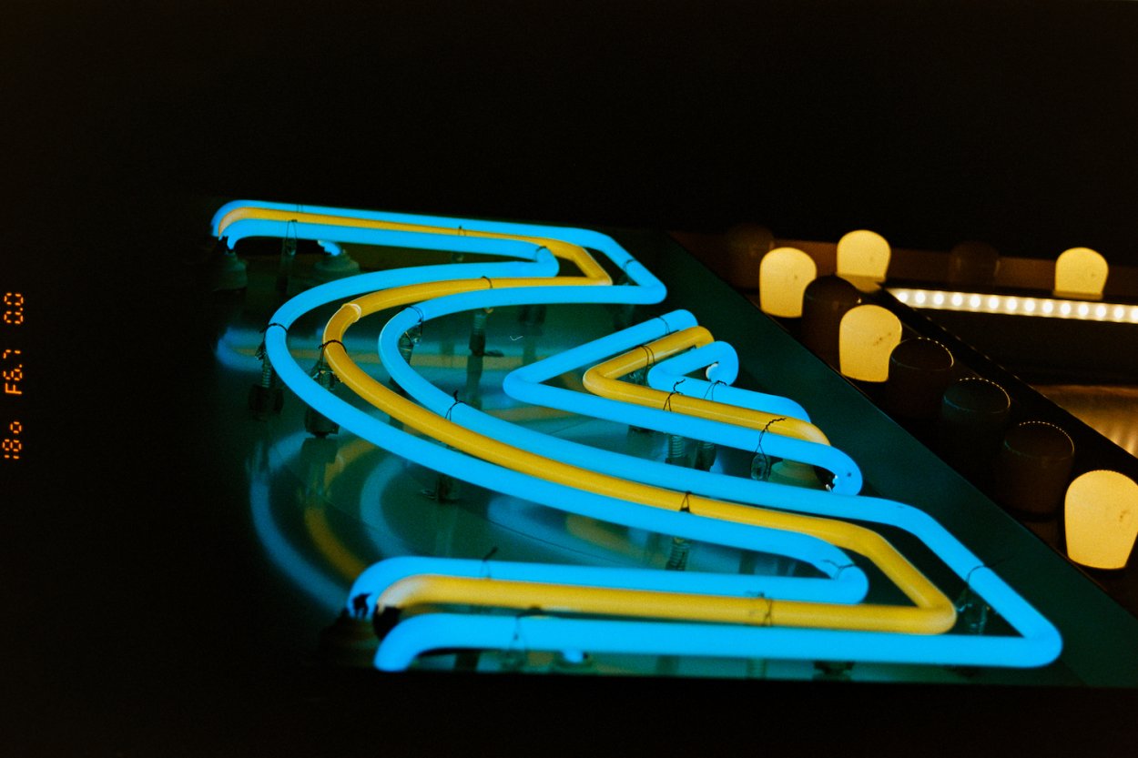 Vibrant streaks of light that look like they're swirling and swooping around. The lines appear three dimensional, some curve left to right, while others forward to backward.
