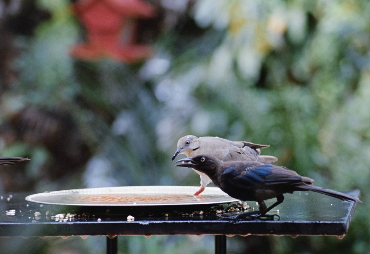 Now that I realize the beauty of the White Winged Dove, that what they are called, I started studying them. I noticed them interacting with other birds and noticed how much smarter they are and their heads is huge in comparison to most other birds in my back yard.