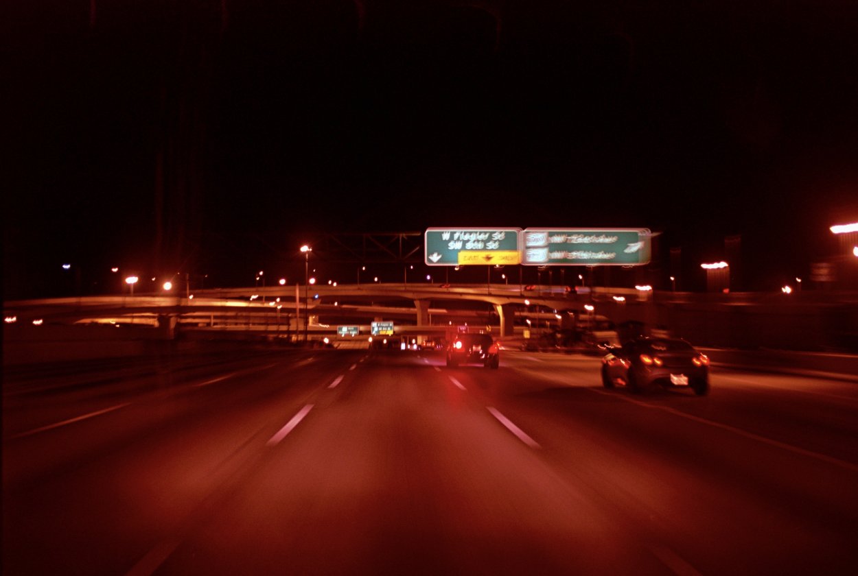 Slow shutter speed film photo on the highway headed south on SR 826.