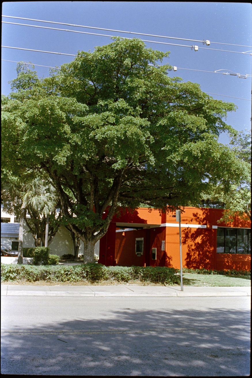This is the brightest orange building you'll ever see. And a beautiful green tree as a  complement!