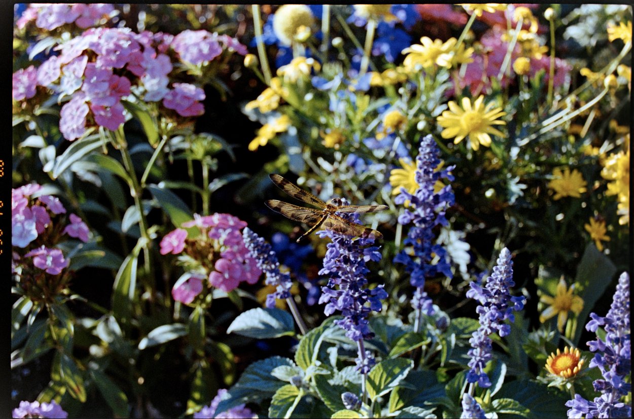 DRAGONFLY ON FLOWERS ON FILM