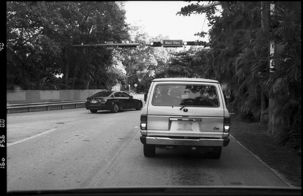 Cruising down Main Highway Coconut Grove Florida in 1980's Toyota Land Cruiser.