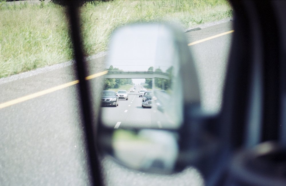 America highways: Black classic in the rearview mirror.