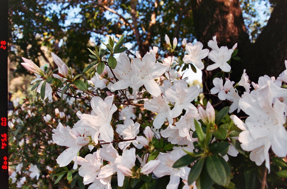 I took this photo not realizing it looks like stock photography. Haha! Also,  didn't notice the bird flying by until after I developed and scanned the film. I photographed this on Cinestill 400D film. Light halation on the trees too.