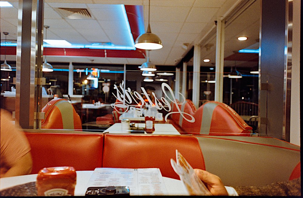 This place is a bit of a greasy spoon and photogentic in the right angles if you know what I mean. For example, the neon sign outside. Glowing in the darkness of the parking lot. With that signature red/orange neon color casting a glow onto the ground. What a cool atmosphere!