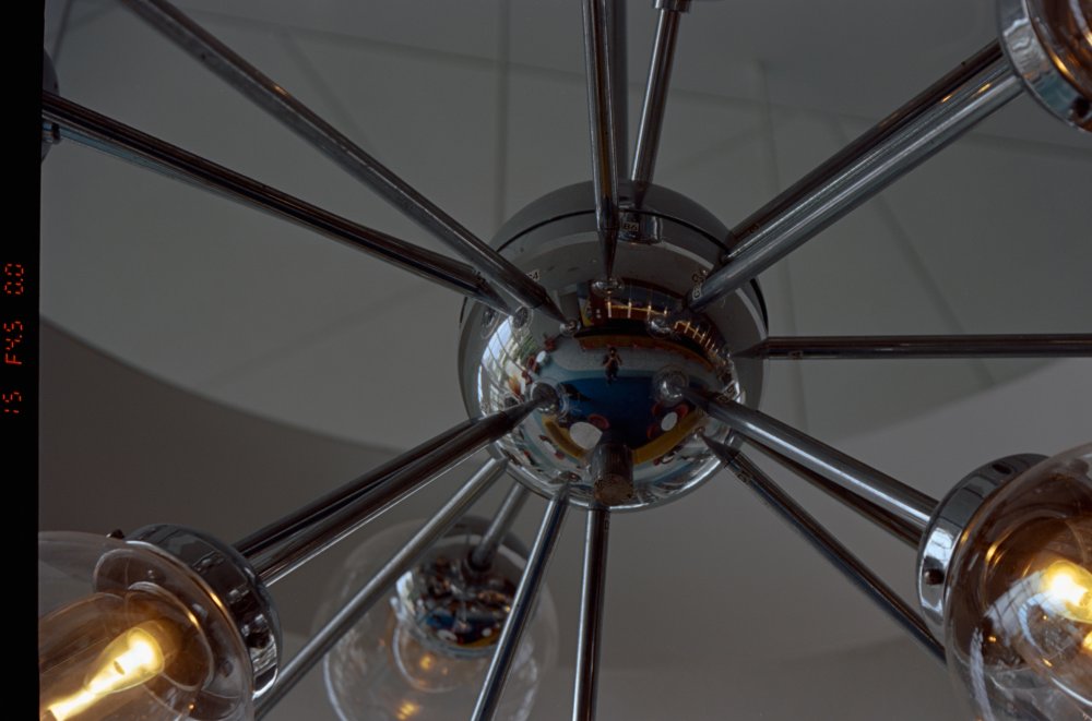 Wow, as I walked up to the second floor of the hotel lobby, I saw this hanging from the ceiling. It's a Sputnik chandelier! I'm not sure if the bulbs are LED, they probably are, it doesn't look like incandescent bulbs. Regardless it looks fantastic in this photo and more importantly in real life. It's a perfect blend of retro, and modern design.