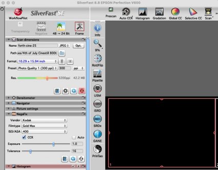 I scan using SliverFast 8. SilverFast’s interface is interesting and quirky. It looks to be from the Apple Aqua UI era. I think it was written by a guy in Germany (He flew a Piper airplane around the world). It has every feature you would ever need and should probably never change.