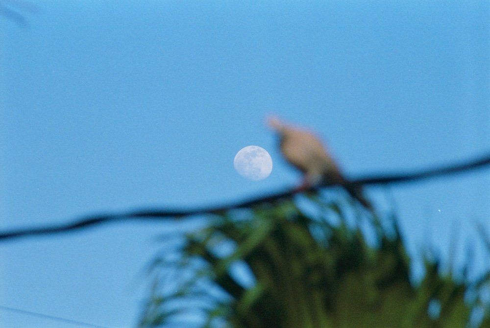 Kodak Ektar 100 doing it's thing, capturing a beautiful sunny day. With soft white clouds and the moon taking a peak.
