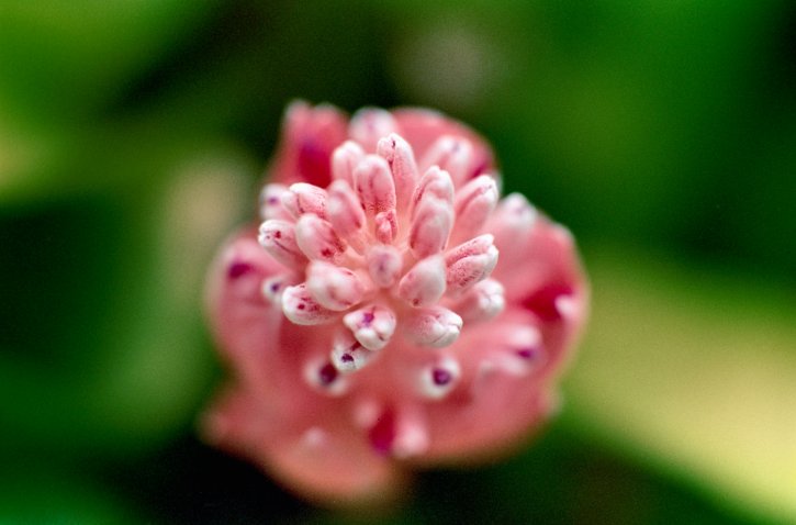 Flaming torch, pink red and purple flower plant on Kodak Vision3 250D film. Bokeh!