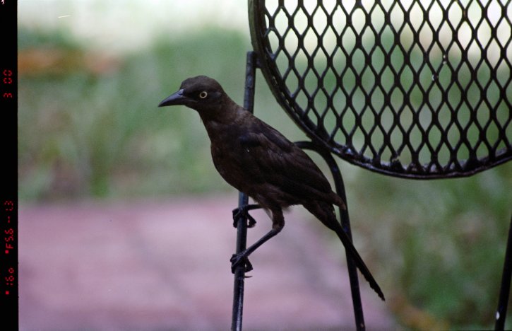 Black bird perched and looking for food. Kodak Vision3 250D.
