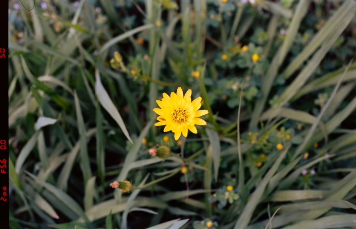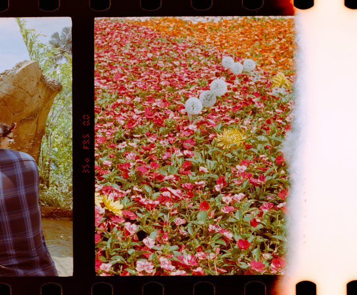 Bulk loaded Kodak Vision3 250D last of the roll pre-exposed mid frame on flowers.