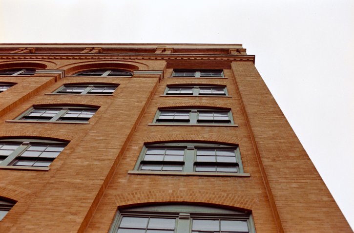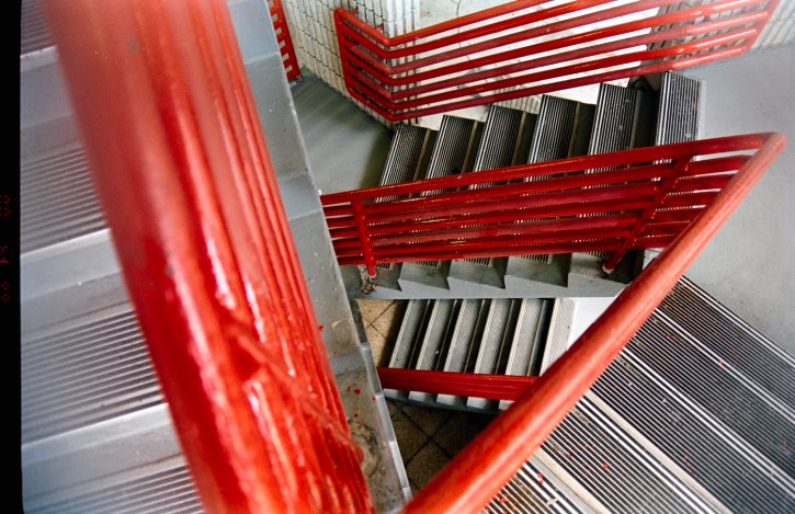 Red handrail diagonal stairs - Kodak Vision3 250D.