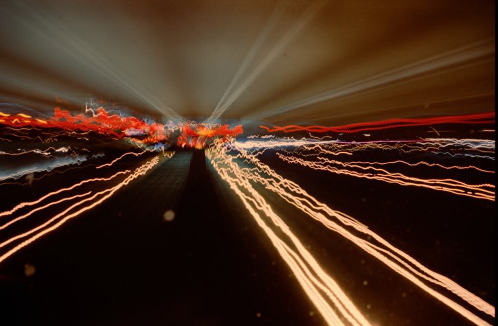 Light streaks exposure. Upside down long exposure cars driving on the highway. Kodak Vision3 250D movie film.