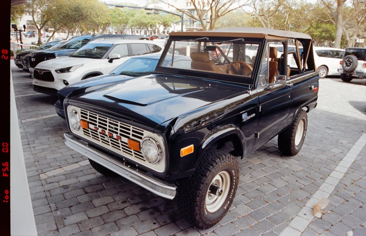 Vintage two door Ford Bronco looking totally mint. Kodak Ektar 100 film.