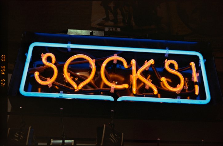 Socks! neon sign. Kodak Gold 200. Fresh fish neon sign on Nikon D70 digital camera.