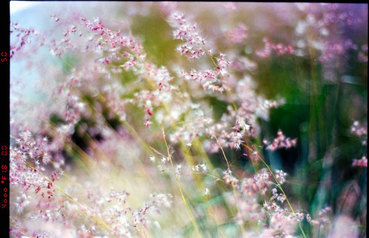 Pink purple flowers on a field shot on Kodak Ektar 100 film.