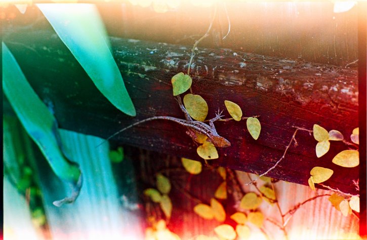 Light leak lizard on Kodak Vision3 250D film.