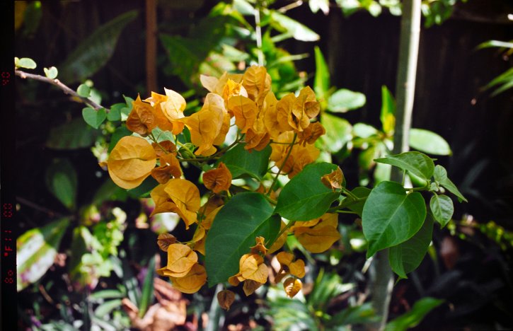 Yellow flowers with green leafs on Kodak Vision3 250D (5207) film.