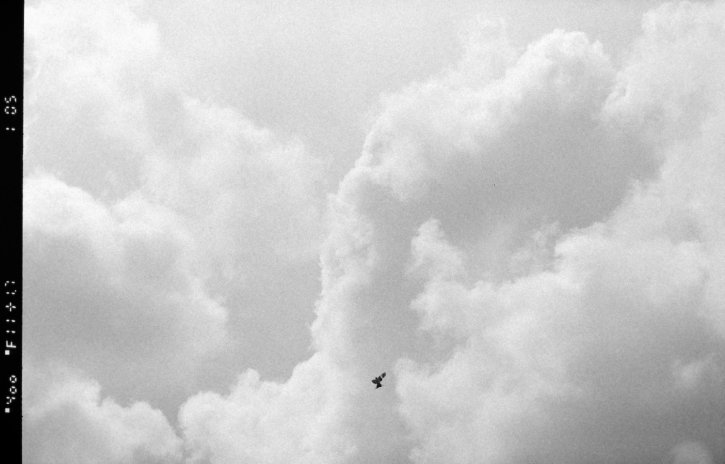 Bird flying straight up! - Kodak Tri-X 400 film on the Nikon F6 film camera with the Nikon 105mm f/2.5 AI-s lens.
