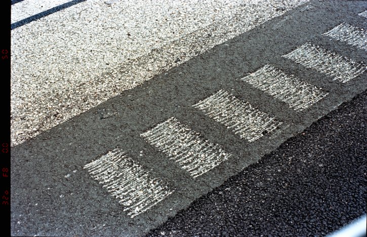 Highway rumble strips are one of those simple and efficient designs that I love. SHot on Kodak Ektar 100 film on the Nikon F6 film camera.