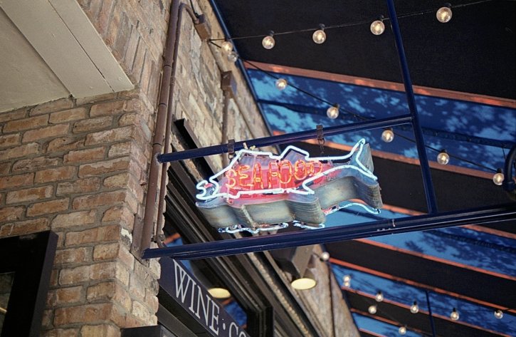 Del Ray Beach Neon Fish seafood on Lomo CN 100 with the Nikon FM2n and the Voigtlander 40mm f/2 lens.
