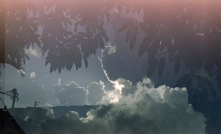 Double exposure with light leaks on Cinestill 50D film.