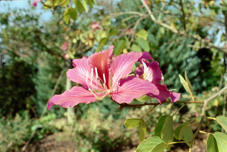 Pink purple flower on Kodak Vision3 250D cinema film as still photography.