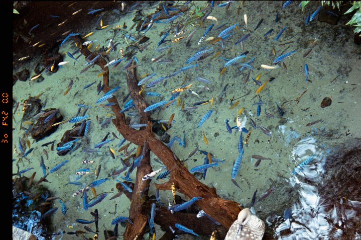 Blue fish in crystal clear water. Fujifilm 400 film on the Nikon F80s with the Nikkor 28–80mm f/3.5–5.6 D lens.