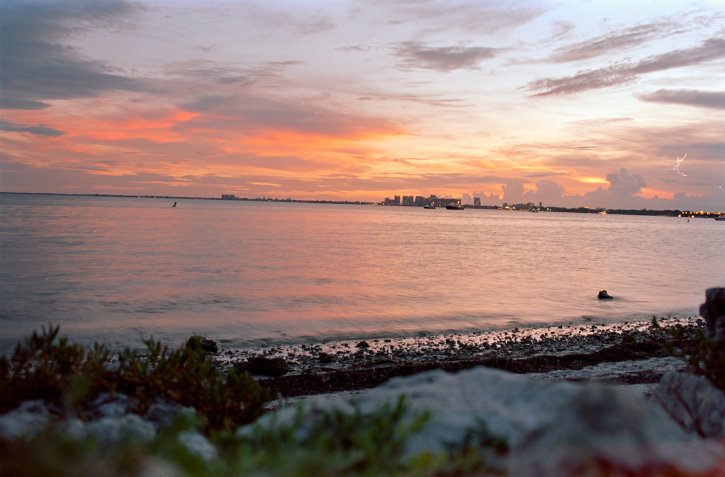 View of Miami from the Hobie Island Beach Park. Kodak Vision3 250D on the Nikon FM2n with the Nikkor 35–70mm f/3.5–4.8 lens.