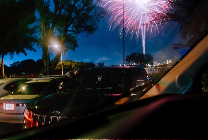 Fireworks on Kodak Vision3 250D 5207 movie film as still photography.