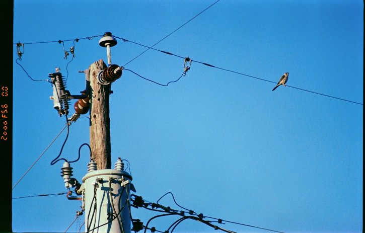 What I think is a falcon sitting on powerlines. Kodak Portra 400 on the Nikon F80s with the Nikkor 70-300mm f/4-5.6 ED lens.