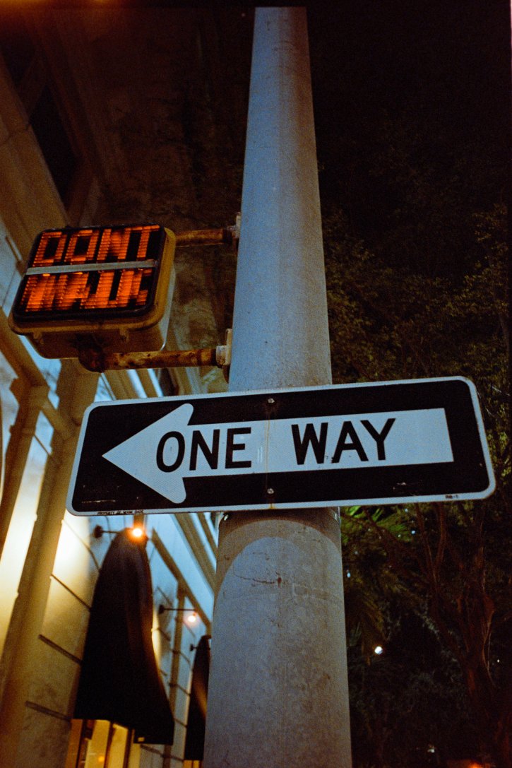 Kaws sculpture from behind at the Plaza Coral Gables, Florida. Shot at night with the Nikon Fm2n, 28mm f/2.8 Series E lens on Lomography Color Negative 800 film.
