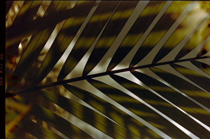 Green palm branch double exposure on Kodak Ultramax 400 film.