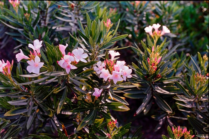 Purdy pink flowers. Kodak Vision3 5207 movie film as still photography with the Nikon FM2n, and the Voigtlander 40mm f/2 lens.
