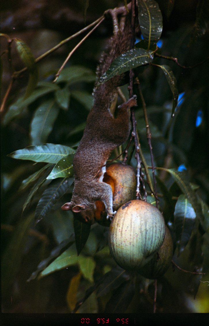I looked out my window and saw this upside down squirrel eating mango. I took a quick photo on my iPhone then about a minute later on my Nikon film camera.