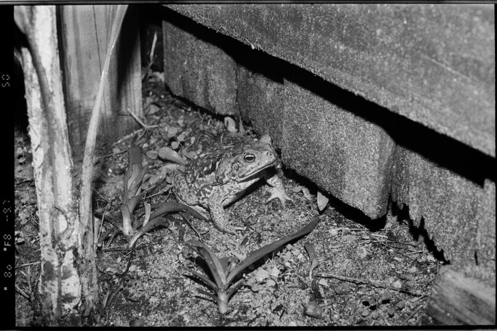 Toad in the back yard. Kodak Tri-X 400 on the Nikon F6, 50mm f/1.8 lens.