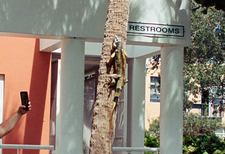 Iguana climbing a palm tree being photographed on an iPhone. Shot on Kodak Portra 400. Nikon F80s with the Voigtlander Ultron 40mm f/2 lens.