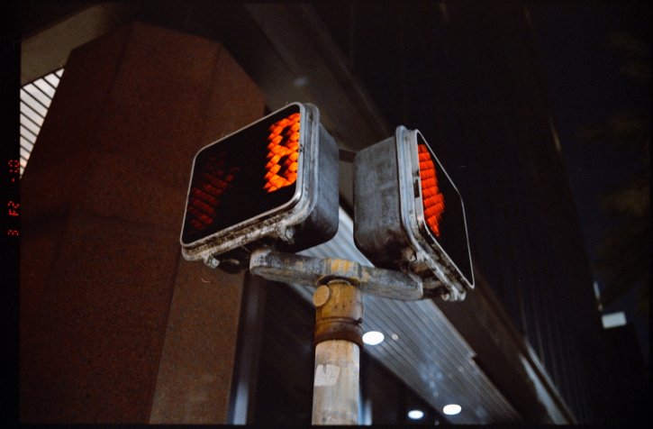 Walk sign - Wait. Kodak 5207 at night.