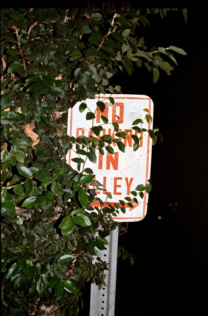 No Parking In Alley street sign covers in Ivy leaves.