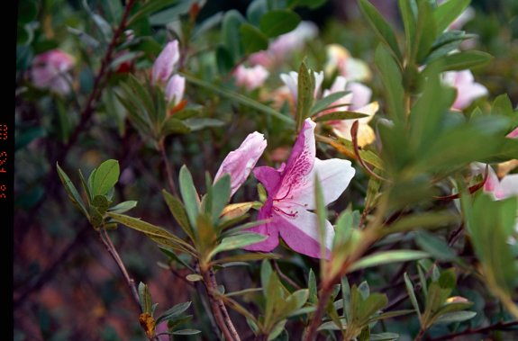 Pink purple and white flowers on Kodak Ektar 100 35mm film. Shot on the Nikon F80s film camera.
