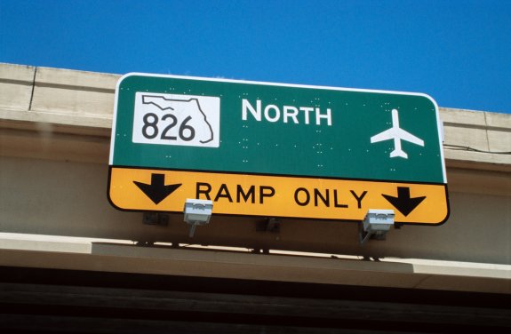 826 North Ramp Only highway sign, with an airport airplane icon, photographed on Kodak Ektachrome 100 film.