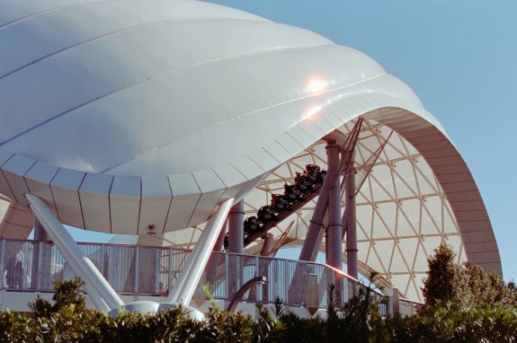Cinestill 400D Halations on TRON Lightcycle Run at Disney World.