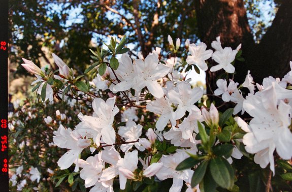 White flowers on Cinestill 400D film. Nikon F6 with the Nikkor 28-80 f/3.3-5.6 G lens.